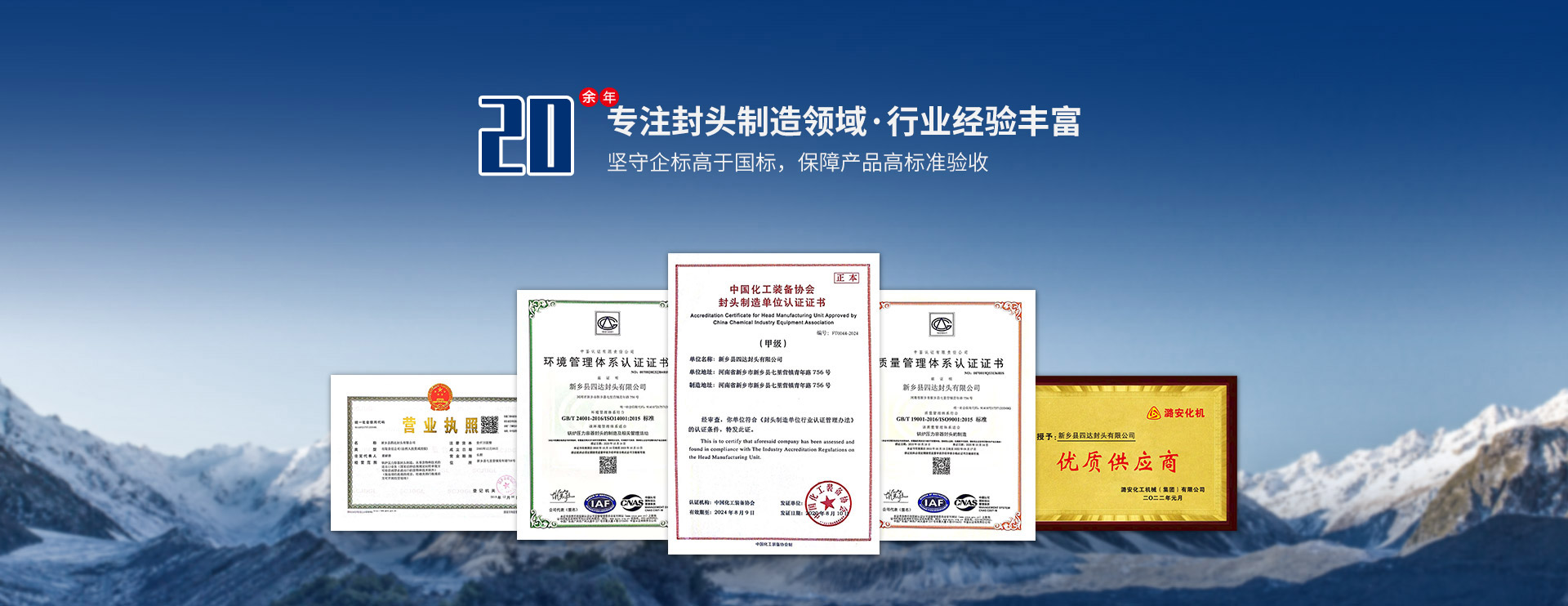 遵循國家標準、美國ASME標準生產(chǎn),取得A3級鍋爐壓力容器部件生產(chǎn)許可,中國化工裝備協(xié)會封頭甲級認證,為產(chǎn)品提供資質保障;